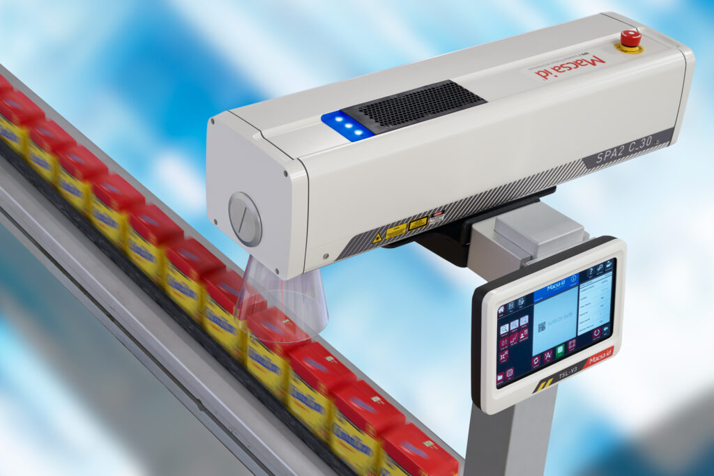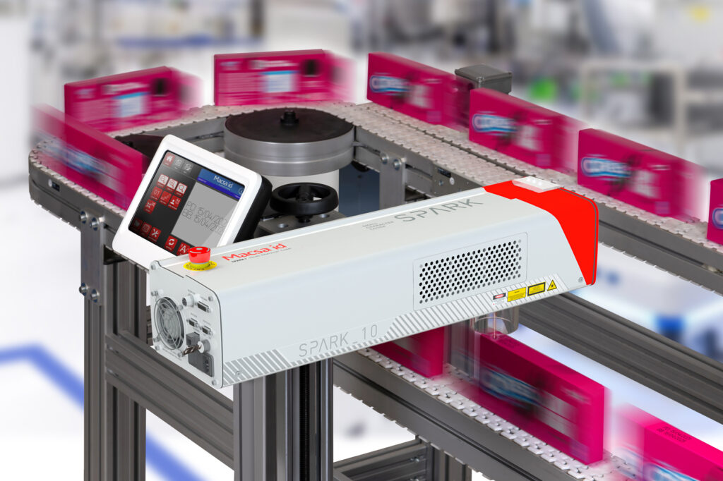 El láser CO₂ SPARK de Macsa id sustituye a los sistemas de inyección de tinta tradicionales, eliminando consumibles y paradas de producción.